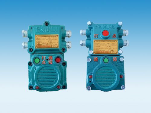 該產(chǎn)品集打點(diǎn)按鈕、防爆燈、防爆電鈴、三通接線盒為一體,有四個(gè)出線口,取代了三通接線盒,用高亮發(fā)光二極管和礦用防潮揚(yáng)聲器取代了防爆燈和隔爆電鈴。