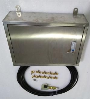 裝置有細水噴霧降塵裝置主控箱、球形截止閥、細水霧化噴頭組件、高壓膠管組成